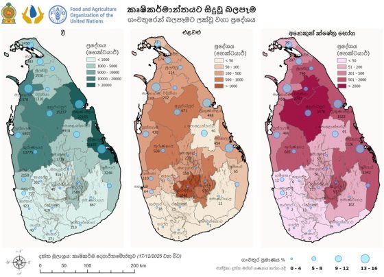 දිට්වා සුළි කුණාටුවෙන් කෘෂි බෝග වලට සිදු වූ හානිය FAO සිතියම්ගත කරයි